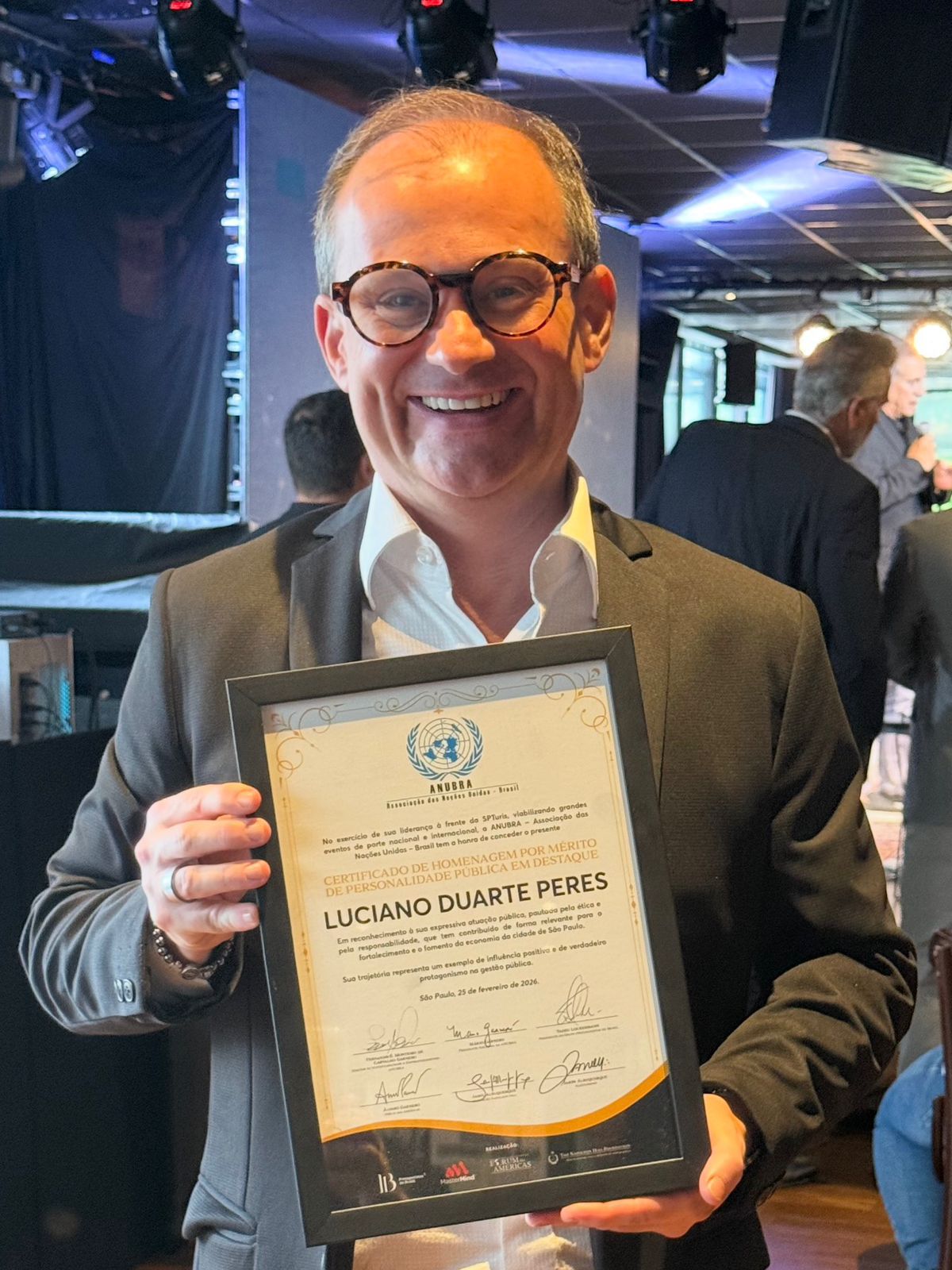 Em um momento emblemático para a comunicação institucional e empresarial do país, Luciano Duarte Peres, CEO da Vivax TV, recebeu uma homenagem oficial da ANUBRA — Associação das Nações Unidas Brasil, com a entrega de um certificado de mérito como Personalidade Pública em Destaque.